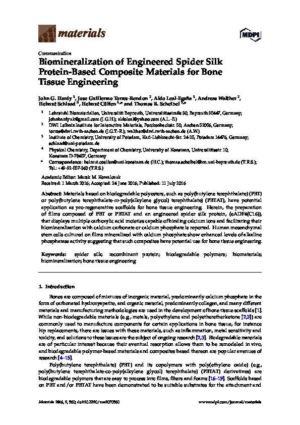 Biomineralization of Engineered Spider Silk Protein-Based Composite Materials for Bone Tissue Engineering
