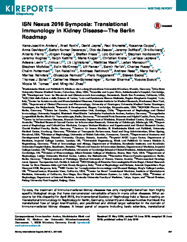 ISN Nexus 2016 Symposia: Translational Immunology in Kidney Disease : the Berlin Roadmap